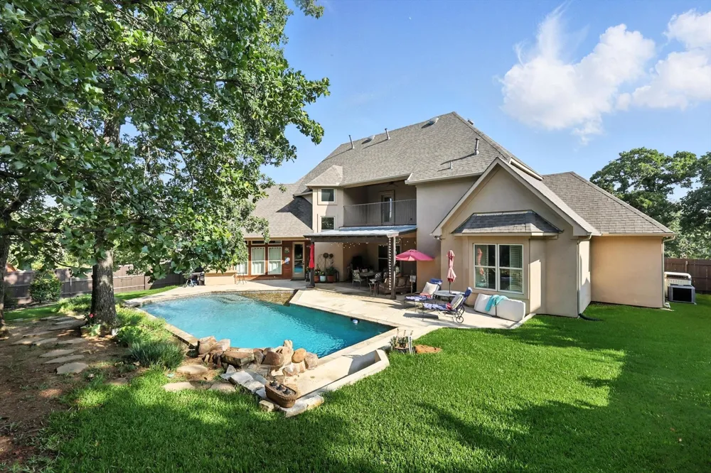 Unbelievable opportunity to own a custom built home in a vibrant Highland Village community. Sitting on a cul-de-sac, plenty of time left this year to enjoy the sparkling pool! Host family and friends outside with the beautiful covered patio and built in grill. This heavily treed lot is one of a kind! If you're looking for a house with lots of storage, this one will check that box. Every room is oversized with plenty of walk-in closet space. Primary and guest suites are both located downstairs. Beautifully styled dining and living rooms offer comfort and grace. You'll love the cedar beams and floor to ceiling fire place in the living room that overlooks the backyard. If you're looking for a functional kitchen, you're in luck! Commercial grade appliances will make cooking and hosting a dream. Double ovens, pot filler, gas cooktop, island, and butler's pantry. 3 car garage, new front windows, and gas lit lanterns in the front! Highly rated schools, top notch community amenities including lighted tennis courts, community center, park, basketball court, pool, walking trails and many activities.